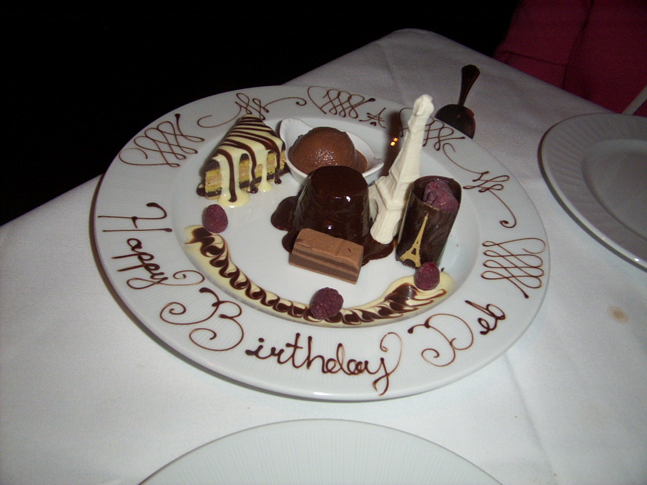 Deb's birthday desert plate in the Eiffel Tower Restaurant